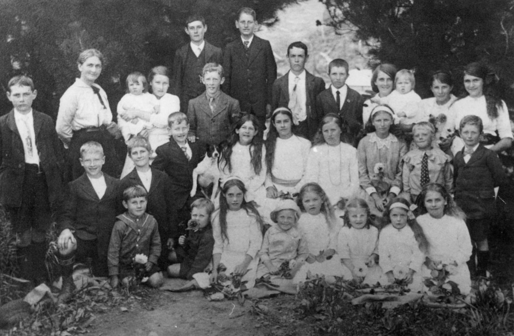 Hinerua school, which opened in 1909 and closed in 1924, was situated on a small hill at the base of the Ruahine mountain range in Central Hawke’s Bay, New Zealand. A mountain stream flowed nearby. The nearest village was Ongaonga, 15 miles distant and the nearest town, Waipawa, about 25 miles away. The pupils were farming children from Blackburn and Hinerua. During the formative years weekly attendance was around 22-27.