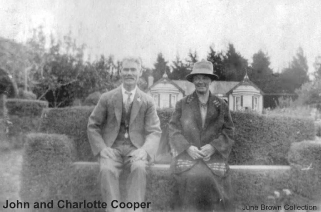 Prior to this, sometime in the early 1890s, John Cooper found himself following several of his siblings into the Wairarapa district of Newman and Nireaha. It was in Newman where John bought some farmland. By day John was a Sawyer/Mill hand. At night John could be found with Charlotte (his future wife), who would be holding a lantern, while he cleared a section of the land, where in 1892 he would build their house. A basic build, additions were added later on as his family grew. In 1893 he married Charlotte Dowsett, the daughter of the Newman Postmaster. It wasn’t long before he established himself as a dairy farmer and immersed himself into all aspects of community life, as was the ‘times’ want. He and Charlotte had six children, two girls and four boys. Charlotte died at the age of 60yrs in 1931. John died in 1942 at the age of 79yrs while a patient in the Pahiatua Hospital. His granddaughter, June Brown, born Cooper, described John as a “darling of a man”.
