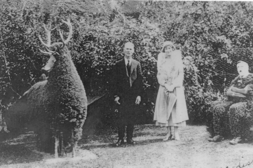 All pioneering families and their children owned large, healthy vegetable gardens as a matter of survival. As time passed, the love of flower gardens gained a large sway throughout the towns and cities. Home gardens were planned and grown with great pride. This was evident in the Agricultural and Pastoral provincial shows, as well as small local district shows, where competitions were held, for the best home-grown produce. Many types of vegetables, fruits, flowers, and assorted by-products were displayed and competed against. Charlotte’s mother, an avid gardener, who lived 1.5 kilometres away from John and Charlotte, had seeds sent from all over the world which she planted in her garden. Charlotte’s father had a glasshouse in which he grew tomatoes, and he also cultivated grapes on his property. It would be fair to say the people in the district had an extensive knowledge of plants and shrubs. Talk of Topiary was more than possible, particularly among new immigrants from England. The Eketahuna library held 4000 or more books. It could have housed the popular English book Topiary: Garden Craftsmanship in Yew and Box by Nathaniel Lloyd (1867–1933), or someone in the district may have had a copy.