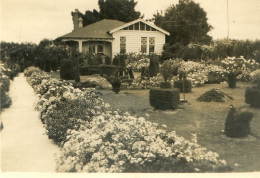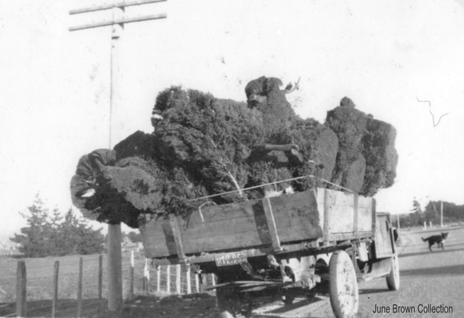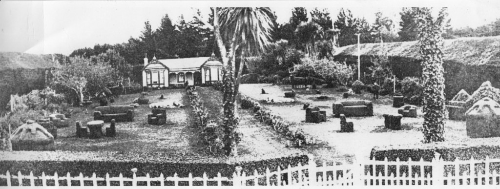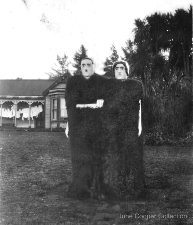 The journey did not go smoothly. There was a hold-up for many days at the Palmerston North Railway Station, and all the Topiary died from lack of water. Undeterred, John and his son Len, who had accompanied him to Rotorua, bought some fast-growing Japanese plants (Retinispora) and wire netting, to then sculpt many pieces. It wasn’t long before the Second World War broke out, however. Realising that tourist numbers would diminish because of the war, coupled with the fact that Len Cooper needed to get back to running the farm, they packed up and returned to Newman. The only Topiary left at Newman was the right-hand set of topiary chairs and couch, plus a sculpted juicer. No new Topiary was created. John Cooper passed away while he was in the Pahiatua Hospital in 1942 at the age of 79. Len Cooper and his family took over the farm, he also maintained what little topiary was left in the garden. The house and farm were sold in 1960. If there is a legacy to be realised here, well then it has to be the invasion of the Coopers into all of Eketahuna’s pioneer families over the years, and the Pahiatua districts as a whole.