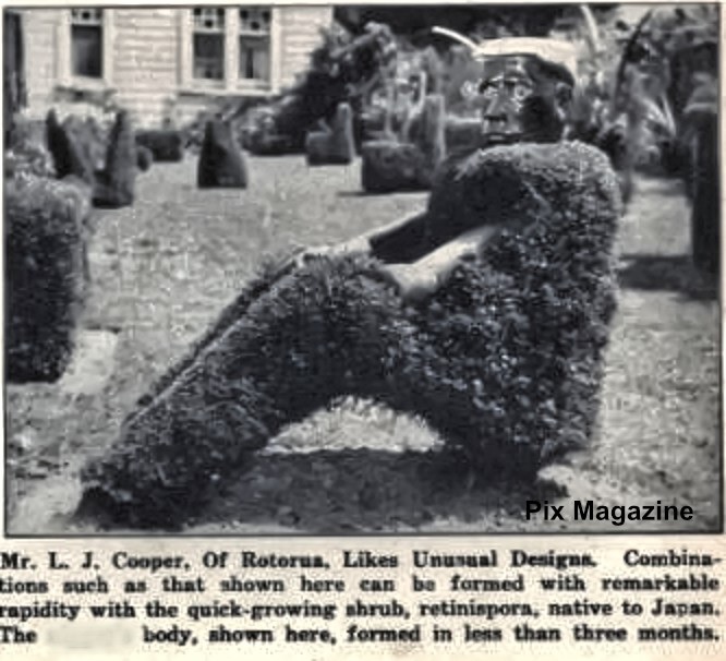 John Cooper was a remarkable person among remarkable people in the Eketahuna district of the time. He added a little more spice to the district than the others did. I imagine he would have been surprised by the attention his Topiary garnered. John’s Topiary Garden was the only one of its size in New Zealand at the time.